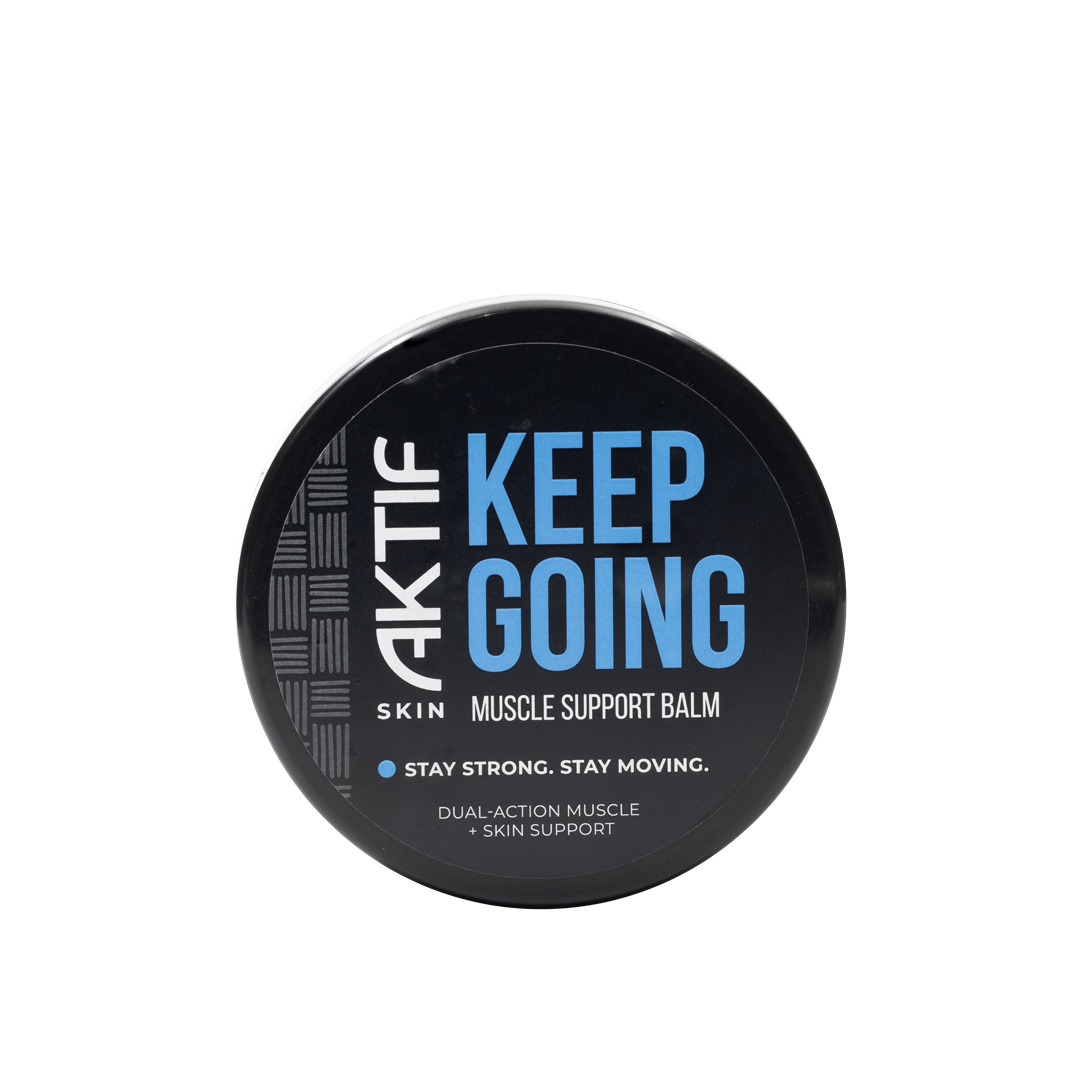 Keep Going is your daily buffer between effort and wear—built to support muscle comfort and strengthen skin in high-friction, high-impact zones. With 2g of plant-based protein, it helps reinforce resilience while easing tension and reducing stiffness, so your body keeps moving with freedom and control.