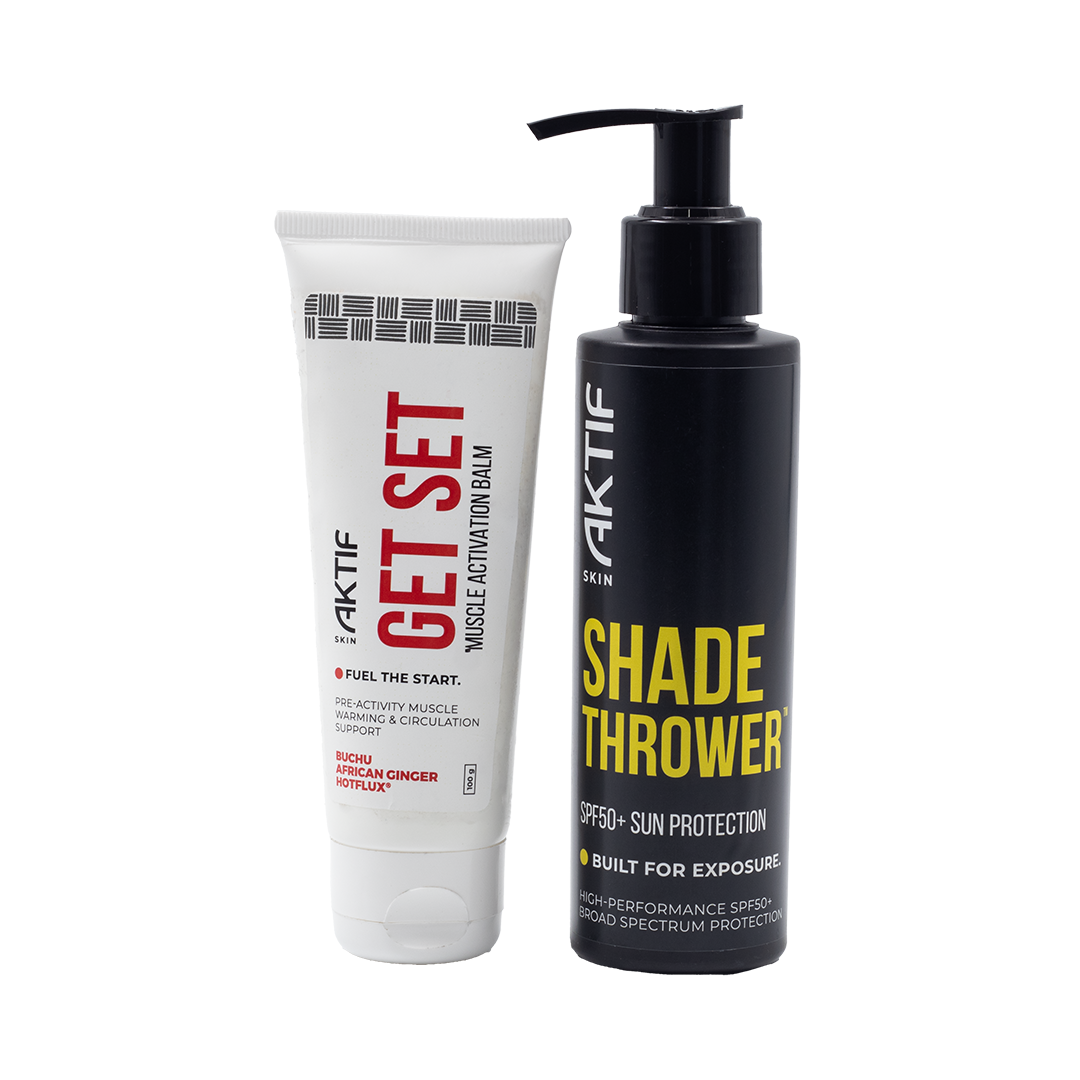 Use Get Set to awaken muscles, boost circulation, and cut the drag from your first rep, stride, or climb. Follow with Shade Thrower SPF 50 to guard skin against heat, UV, and grit without slowing you down.